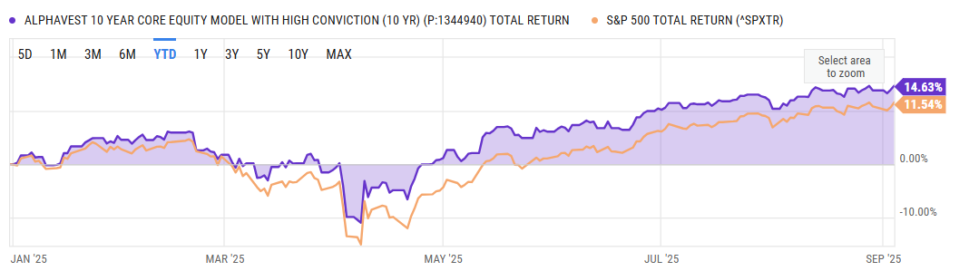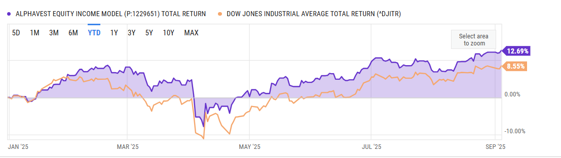 Of our YTD losers, long time holding, Brown & Brown/BRO, and International holding, Invesco India ETF/PIN are being evaluated for portfolio elimination. PIN has come underperformed with recent tarriff pressures. PIN, is a 7% holding in the Alphavest 10 YR Portfolio. PIN’s underperformance has not hindered the Portfolio in outpacing the S&P 500 YTD up +14.63% vs. +11.64% YTD for the S&P 500. BRO is an 8% holding in the Alphavest Aristocrats Portfolio +9.36% vs. DJIA +8.55%, again, YTD underperformance is not hindering the Aristocrats Portfolio from outpacing its benchmark/DJIA.